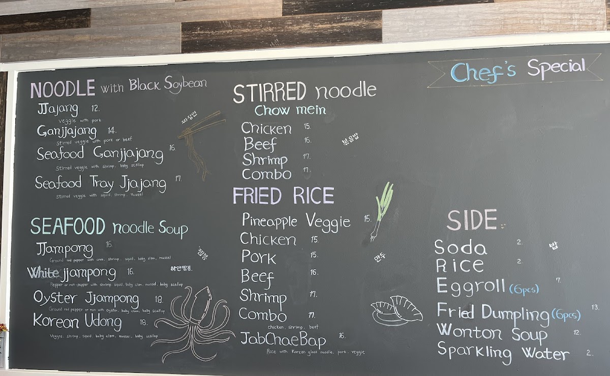 Veggie, shrimp, squid, baby clam, mussel, and Veggie